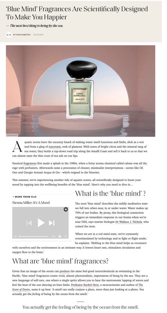 Elle UK https://www.elle.com/uk/beauty/skin/a39943859/mind-over-masking-its-time-to-manifest-your-way-to-better-skin/ https://www.elle.com/uk/beauty/a37113371/upcycled-perfume/ https://www.elle.com/uk/beauty/a36473016/blue-mind-fragrances-happiness/ Share this: Share on X (Opens in new window) X Share on Facebook (Opens in new window) Facebook Like Loading...