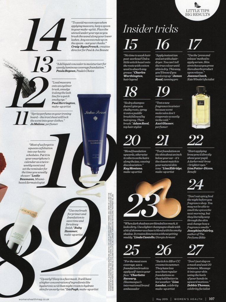 ES Magazine – Fragrance to The RescueWomen’s Health – Unlock The Secrets To Ageless SkinWomen’s Health – 60 Beauty Tips Every Woman Needs To KnowHello – The Artistry of AestheticsTown & Country – Can Popping A Pill Really Improve Your SkinCOUNTRY & TOWNHOUSE TWEAKMENT GUIDE – THE INBETWEENERS