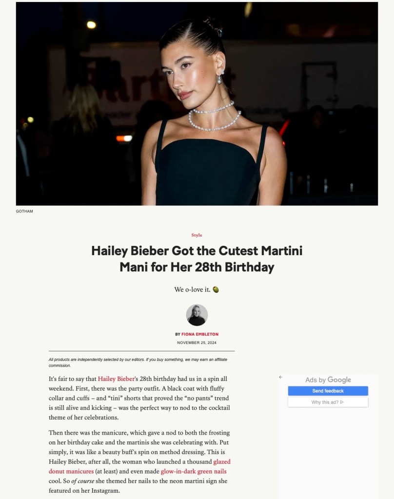 Teen Vogue https://www.teenvogue.com/contributor/fiona-embleton https://www.teenvogue.com/story/zendaya-wet-look-hair-glittery-dress-2024-olympics-prelude https://www.teenvogue.com/story/hailey-bieber-martini-mani-28th-birthday https://www.teenvogue.com/story/joey-king-vintage-wood-hair https://www.teenvogue.com/story/tiktok-lash-glue-bangs-viral-hack https://www.teenvogue.com/story/lily-collins-debuts-bob-summer-2024 Share this: Share on X (Opens in new window) X Share on Facebook (Opens in new window) Facebook Like Loading...